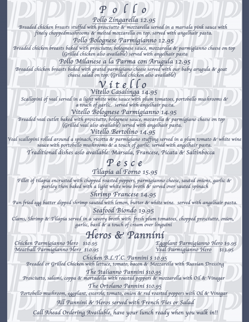 Piccolo's150 east jericho turnpikeMineola, NY 11501ph: 516-248-8110alt: 516-248-8892Robert@piccolosny.com